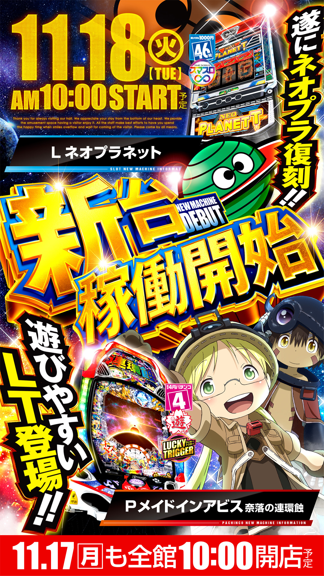 | 台数 | パチンコ:1046台/スロット:1004台 |